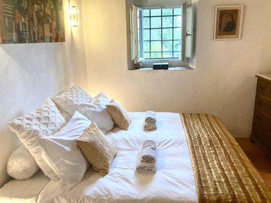 Oozing Tuscan charm, this king size or twin room has double doors opening to the ancient steps and courtyard, with views of the garden and Chianti hills